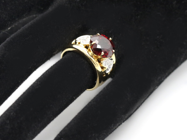 | 素材 | K18YG(イエローゴールド) ガーネット:4.78ct ダイヤモンド:0.10ct | サイズ | 11号 ※サイズ変更も可能です。 |